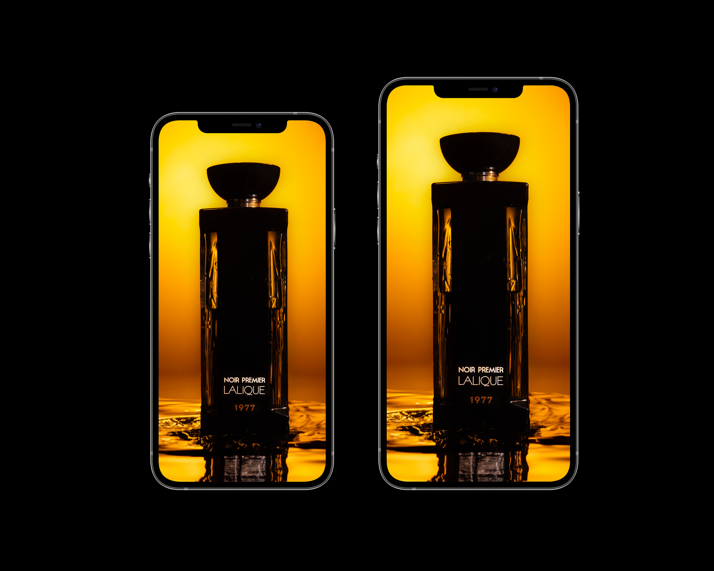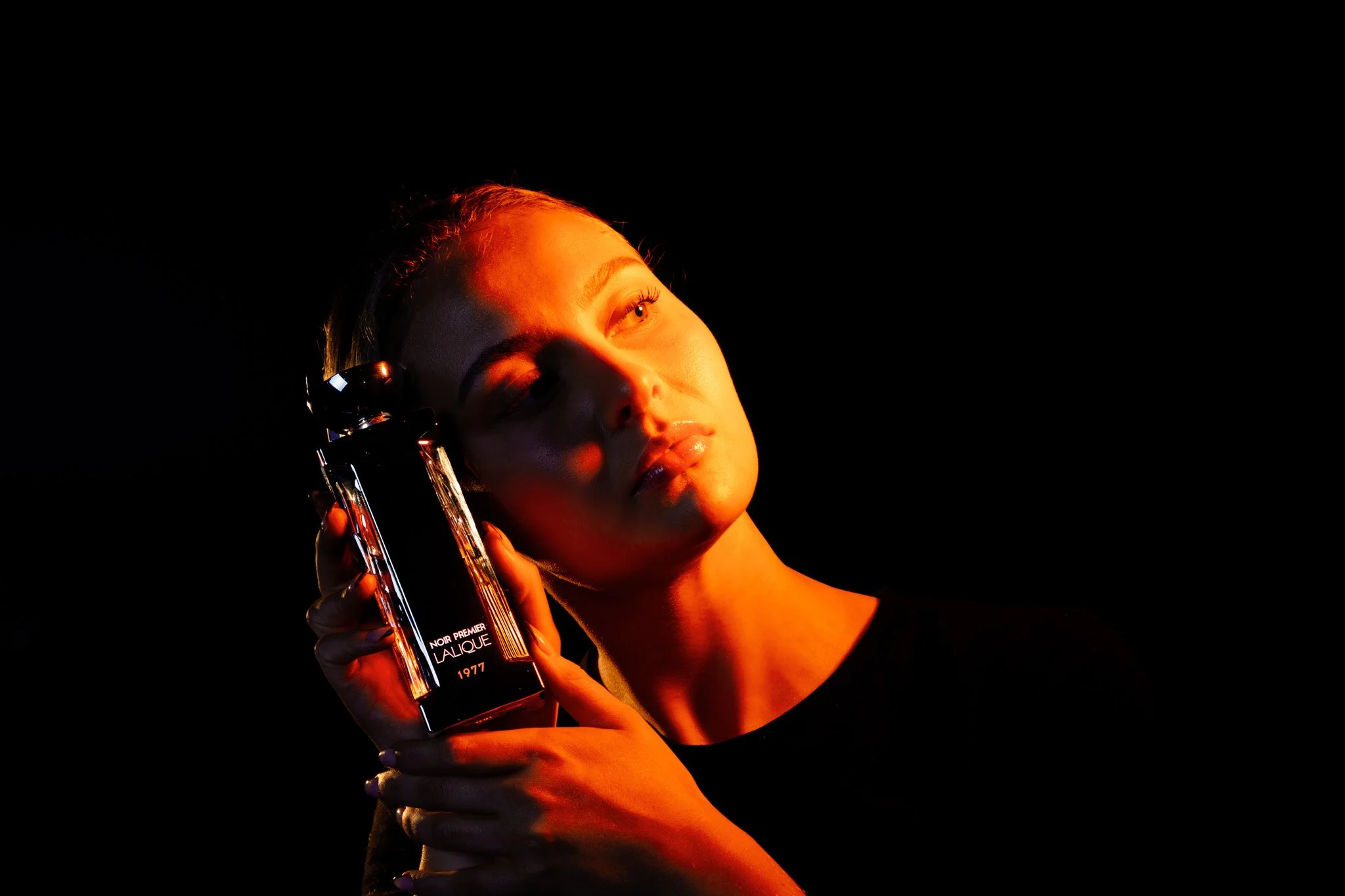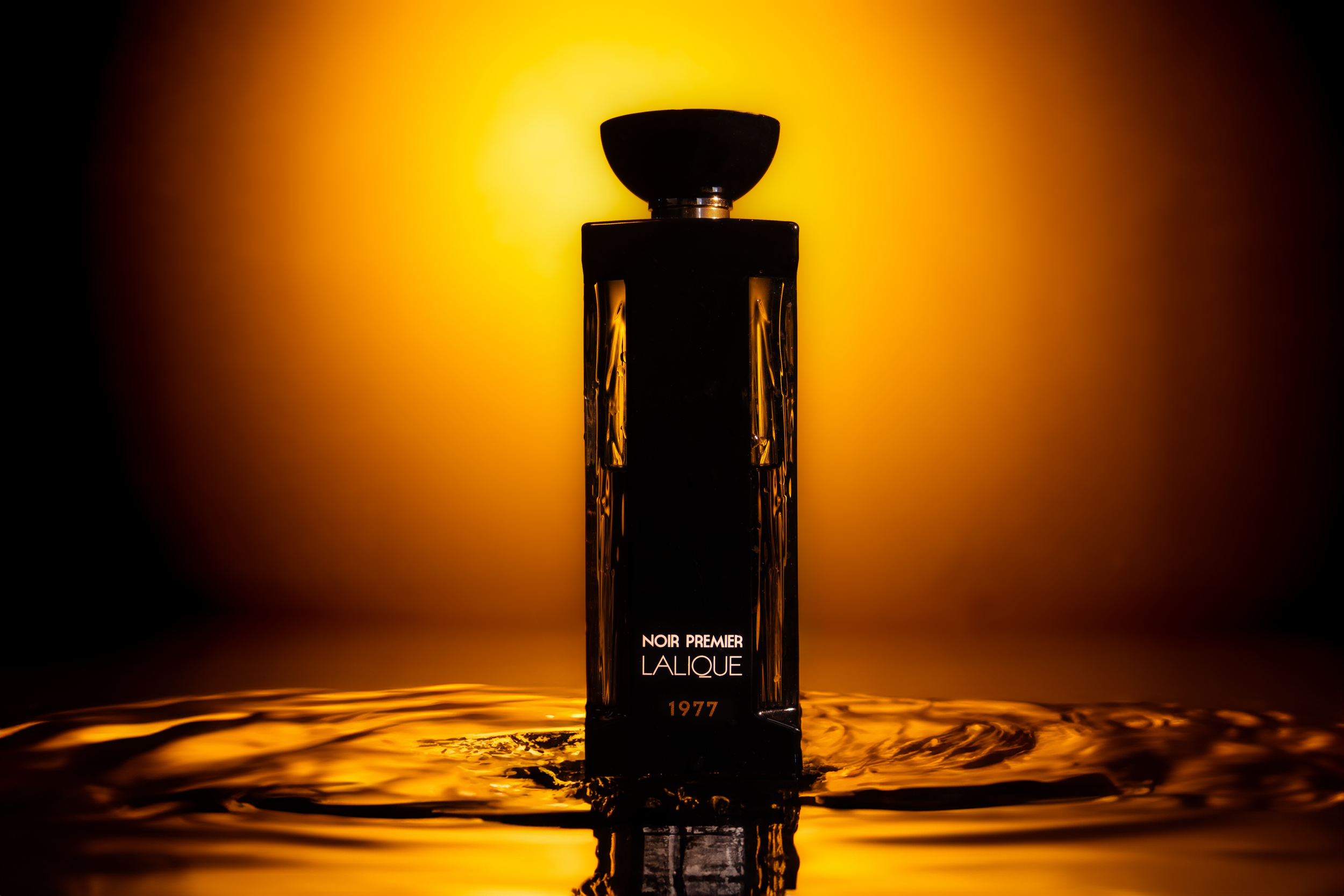 I experimented with photographing an exclusive perfume called "Noir premier" from Lalique, a French company known for glass art. I explored light, water, and shadows to highlight the shapes of the perfume, aiming to create a style reminiscent of older Chanel ads: elegant and exclusive, with a deep dark tone and a contrast of gold reflecting the bottle.